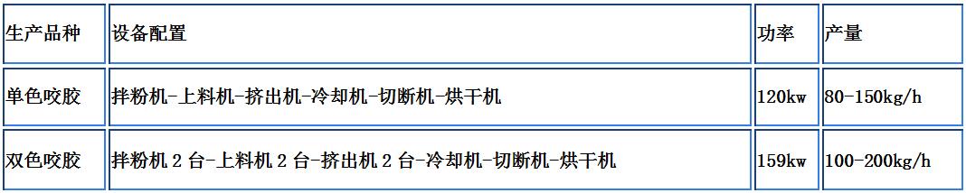 3、直接挤出型咬胶主要加工条状、棒状双色咬胶,其形状通过磨具挤压后直接定型,通过切断机切断后达到要求的理想尺寸。其形状根据产品要求开模,五角星、五棱、六棱、十字、狗骨头,圆双色拧花,方双色拧花、双色熊掌、五花肉等形状等。