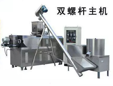 3、双螺杆膨化机:在高温高压环境、螺杆的挤压情况下,通过调节工艺生产部不同的饲料,具体颗粒大小与形状可以换模具。